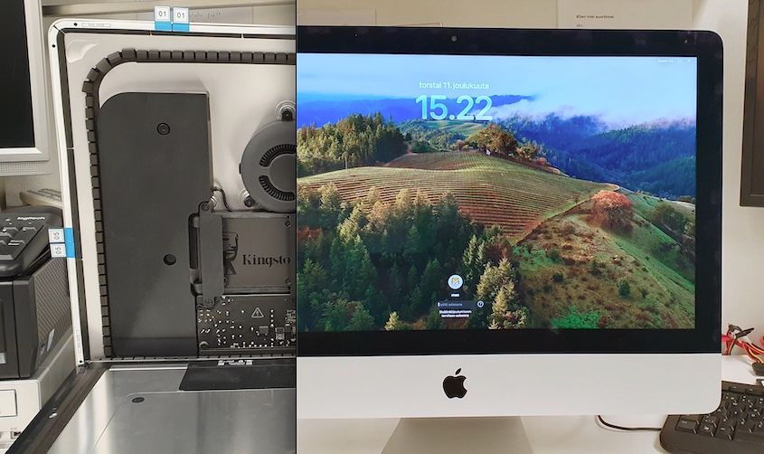 Asiakas oli yhteydessä takkuilevan 27'' 2015 vuoden iMacin suhteen. Koneen ongelma oli tavaton tahmaaminen, eli mikään ei etene ja jos etenee menee jumiin. Tämä liittyi siis hajoava kovalevyyn. Kone saapui ja levy tosiaan oli loppu eikä sieltä saatu mitään ulos edes raakakopioinnin kautta, mutta asiakkaalla oli varmuuskopiot kaikesta - hieno homma!. Koneeseen laitettiin uusi nopea SSD levy sisään ja asennettiin koneeseen tuore käyttöjärjestelmä. Kone itseasiassa ei luontaisesti ota vastaan enää uusimpia käyttöjärjestelmiä, mutta meidän kautta kone saatiin asennettua nykypäivän tasolle. Asiakas sai takaisin hienon iMac Retina 27'' mid-2015 koneensa, tuoreella käyttöjärjestelmällä ja nopsan levyn vauhdittamana taas vuosiksi eteenpäin mallikasta koneen käyttöä tiedossa. Asiakas toi vielä toisen 2012 vuoden iMac 27'' koneen johon myös päivitettiin käyttöjärjestelmä. Tästä tuli myös oikein hyvä, joskin pyörivä perinteinen kovalevy tekee koneesta hieman rauhallisemman, mutta varsin käytettävän.